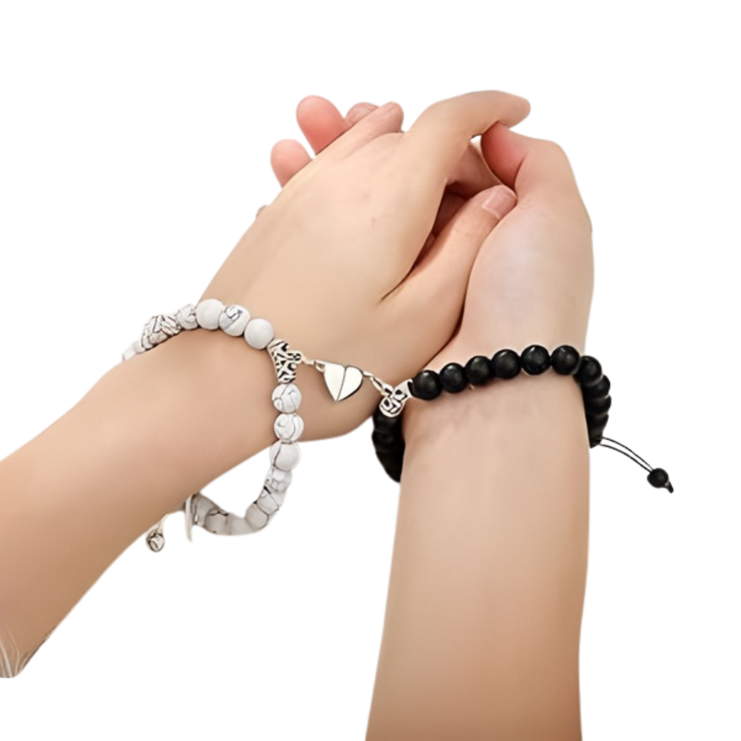 Cada pulsera cuenta con un imán integrado que se atrae cuando ambas están cerca, representando la unión, el amor y la conexión entre dos personas.